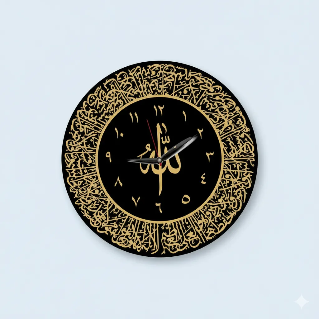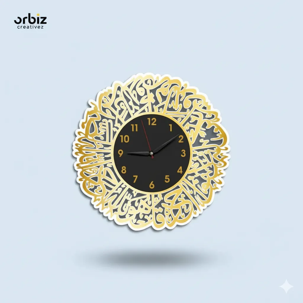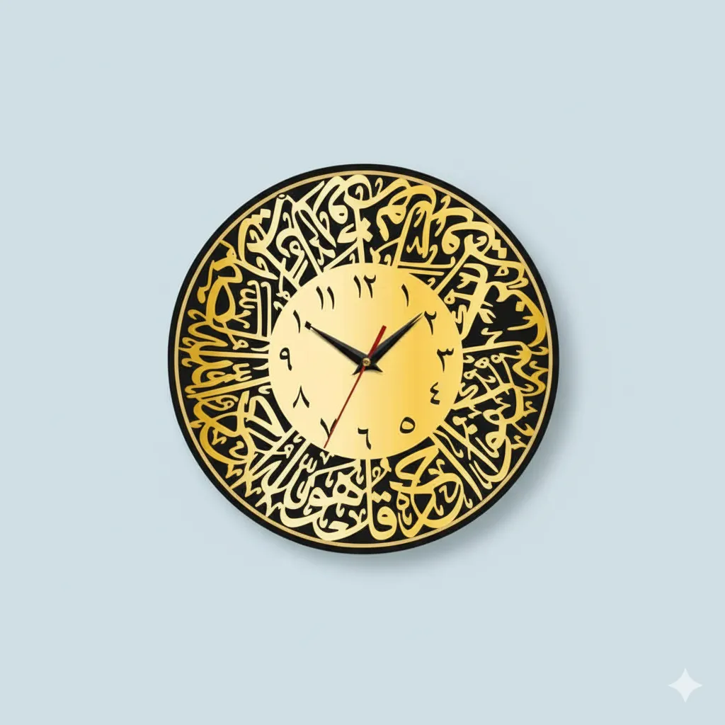 Surah Al Ikhlas Acrylic Wall Clocks|Islamic Wall Clocks |Islamic Wall Art – Glod and Black